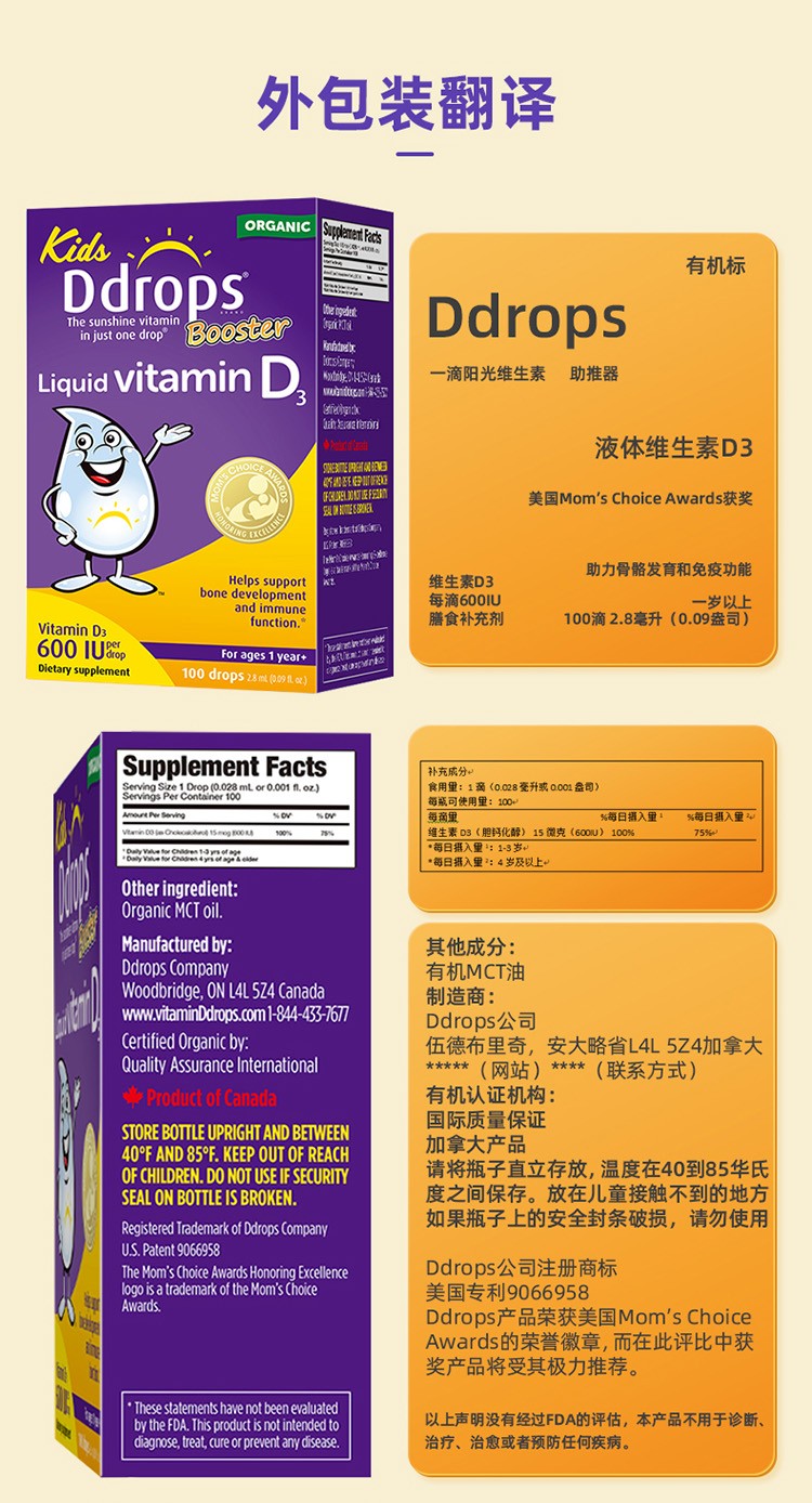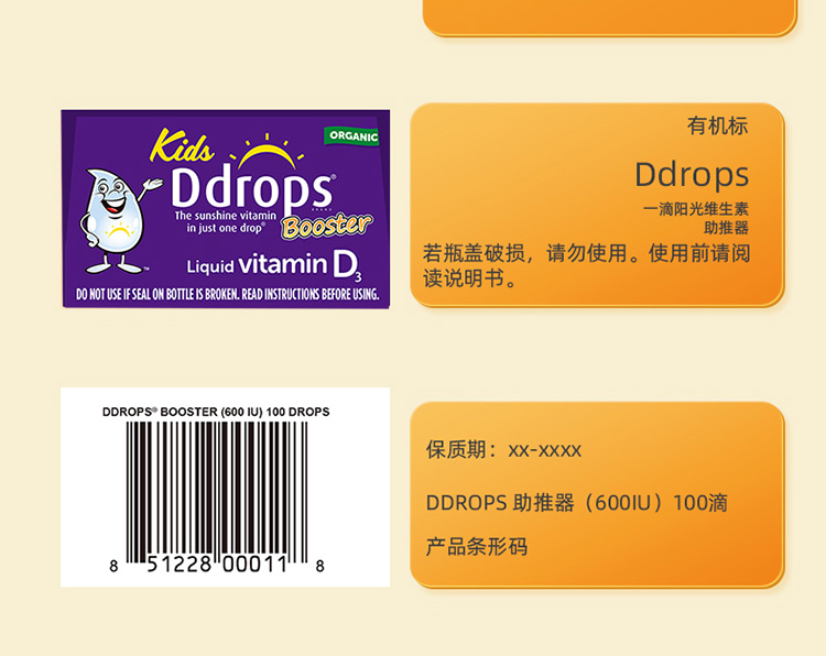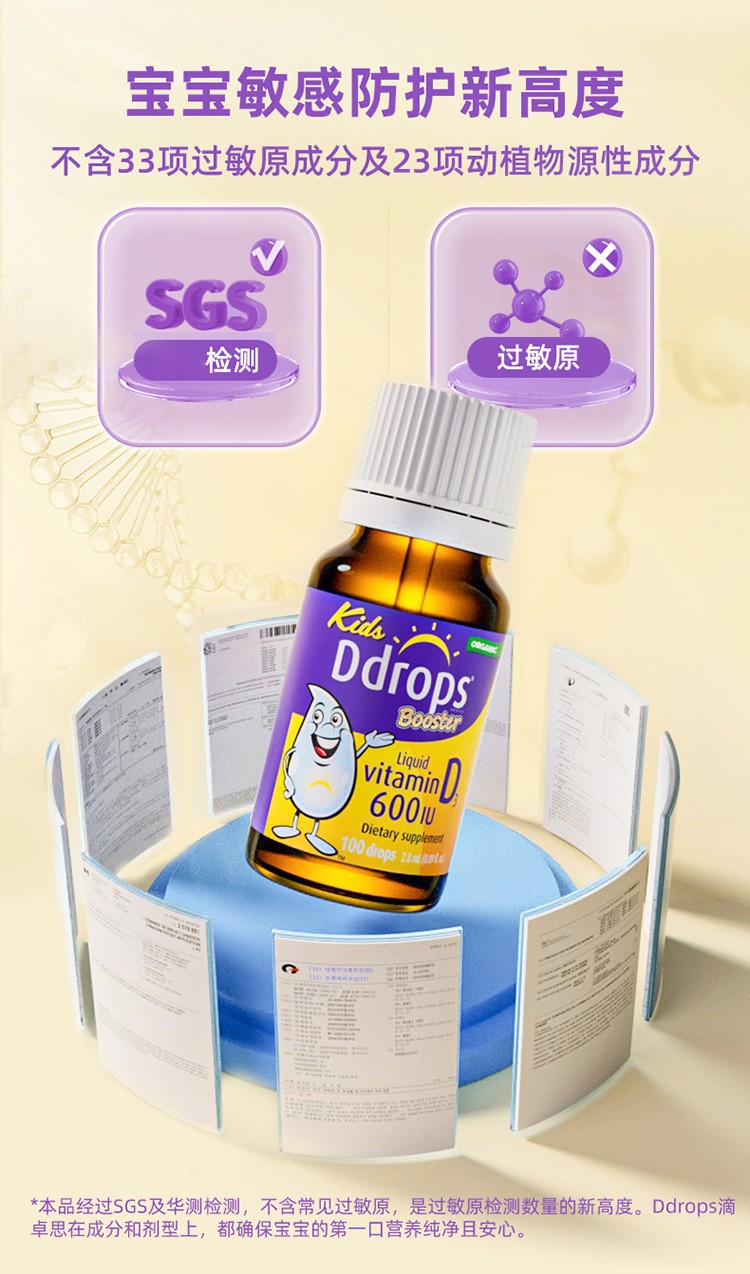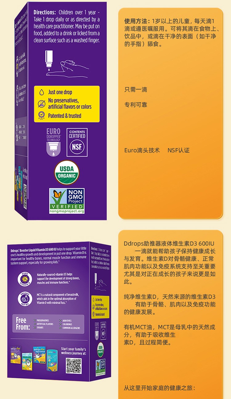 Ddrops 滴卓思婴儿液体维生素D3滴剂 600IU 2.8ml 1岁以上