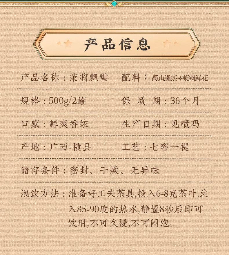 碧岩韵茶绿罐茉莉花茶2*250gLGML500
