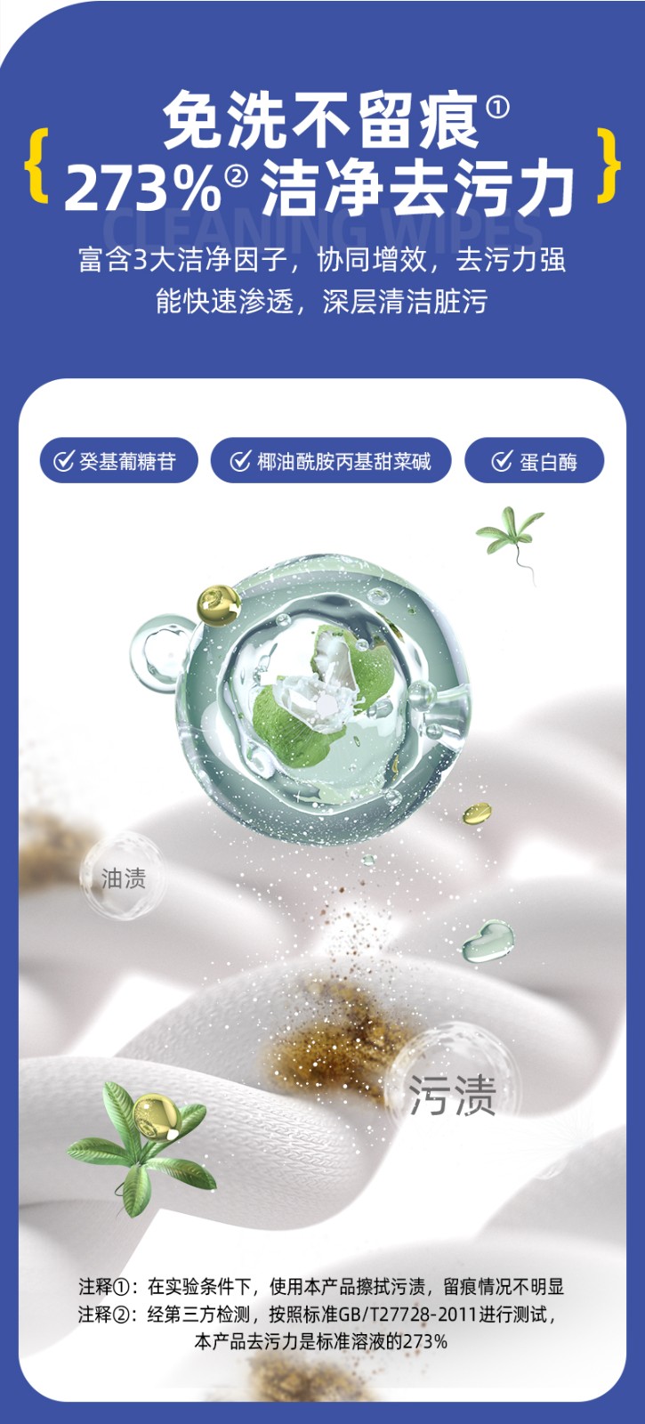 植护 宝蓝系列多功能羽绒服清洁湿巾10片/包*10包