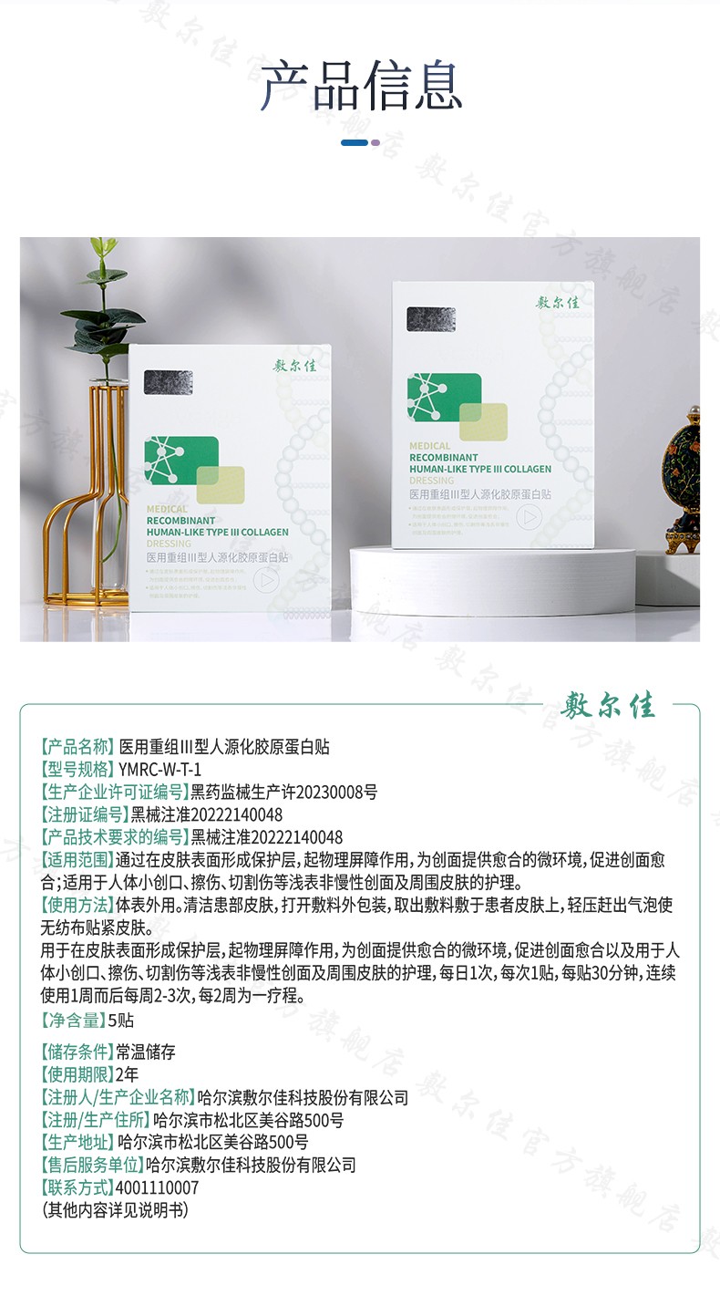 敷尔佳 医用重组Ⅲ型人源化胶原蛋白贴 (5贴/盒)