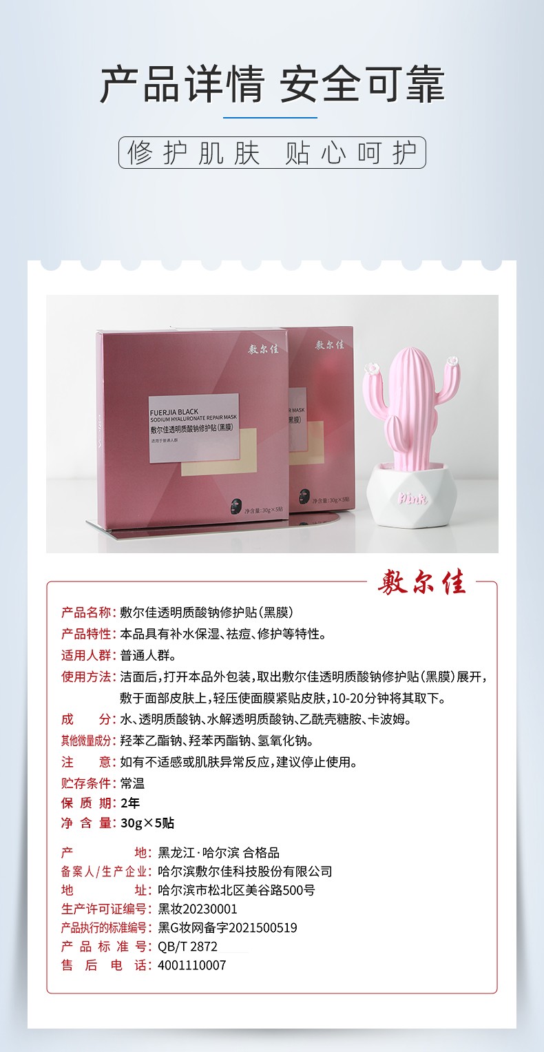 敷尔佳 透明质酸钠修护贴(黑膜)妆号黑膜(5贴/盒)