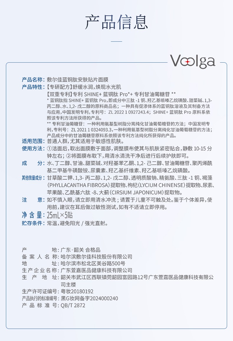 敷尔佳 蓝铜肽安肤贴片面膜(5贴/盒)