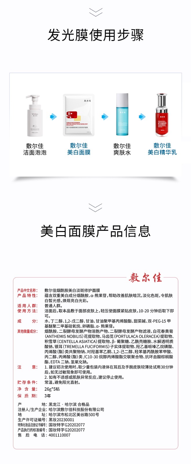敷尔佳 烟酰胺美白淡斑修护面膜发光膜/美白膜(5贴/盒)