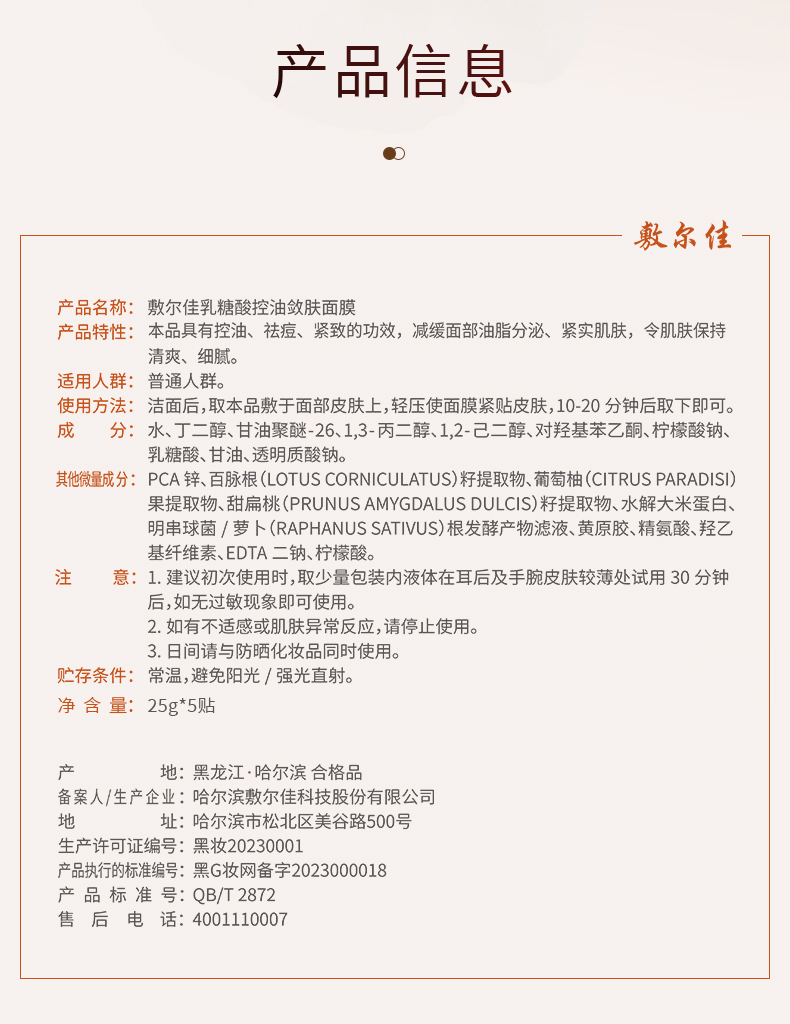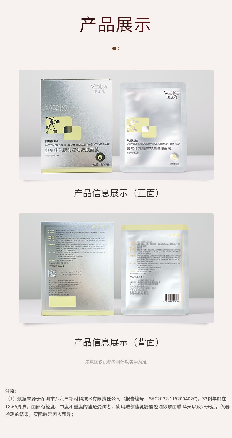 敷尔佳 乳糖酸控油敛肤面膜乳糖酸面膜(5片/盒)