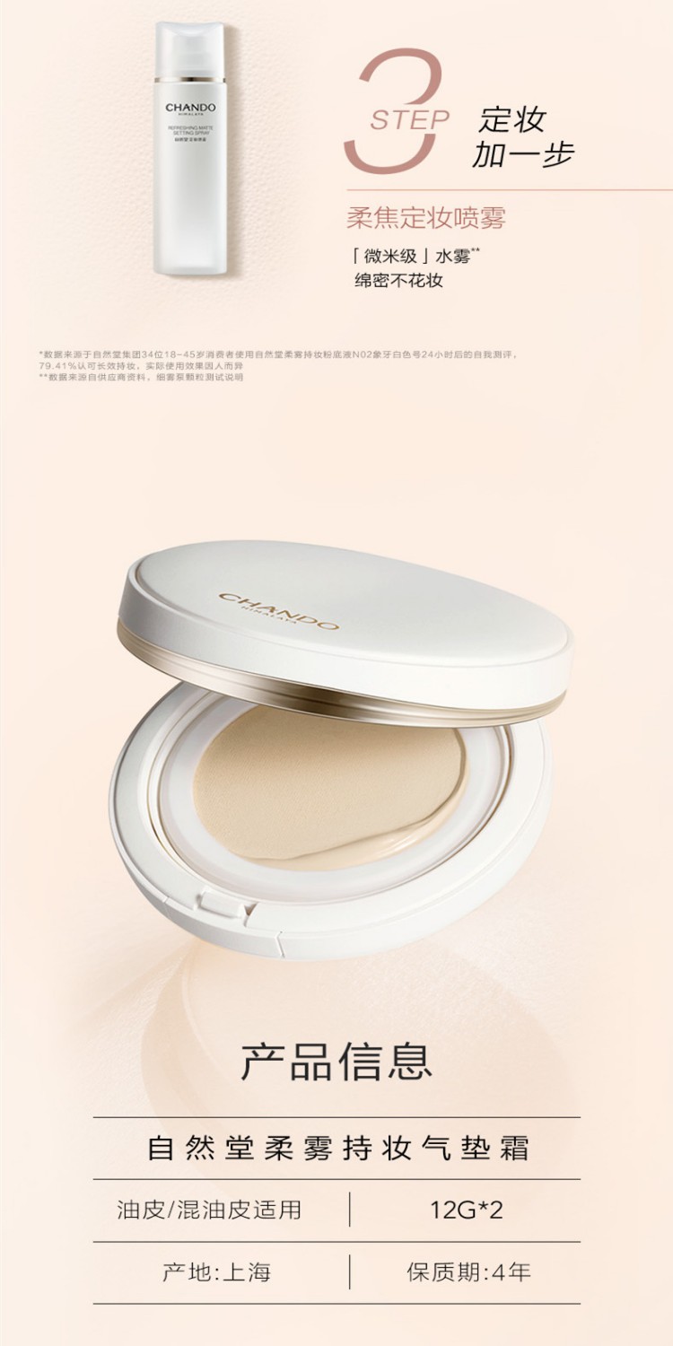 自然堂 柔雾持妆气垫霜【正装+替换装】 #N02象牙白(12g*2个)