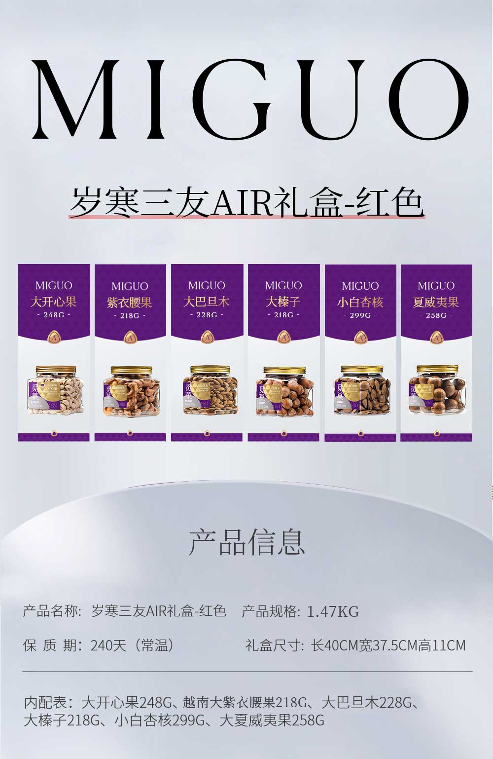 觅菓 岁寒三友红色坚果礼盒AIR系列升级款-1.47kg