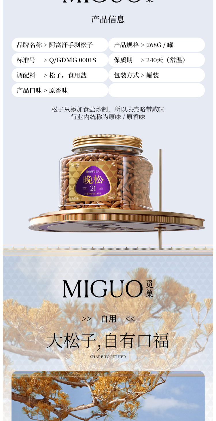 觅菓 晚松AA+阿富汗手剥大松子268g