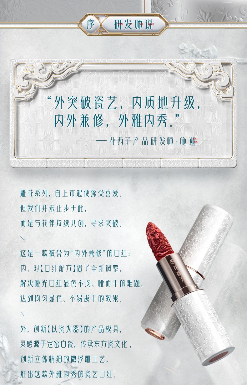 花西子 花露玲珑陶瓷口红-油溶樱花版-M303桃红釉-3.5g