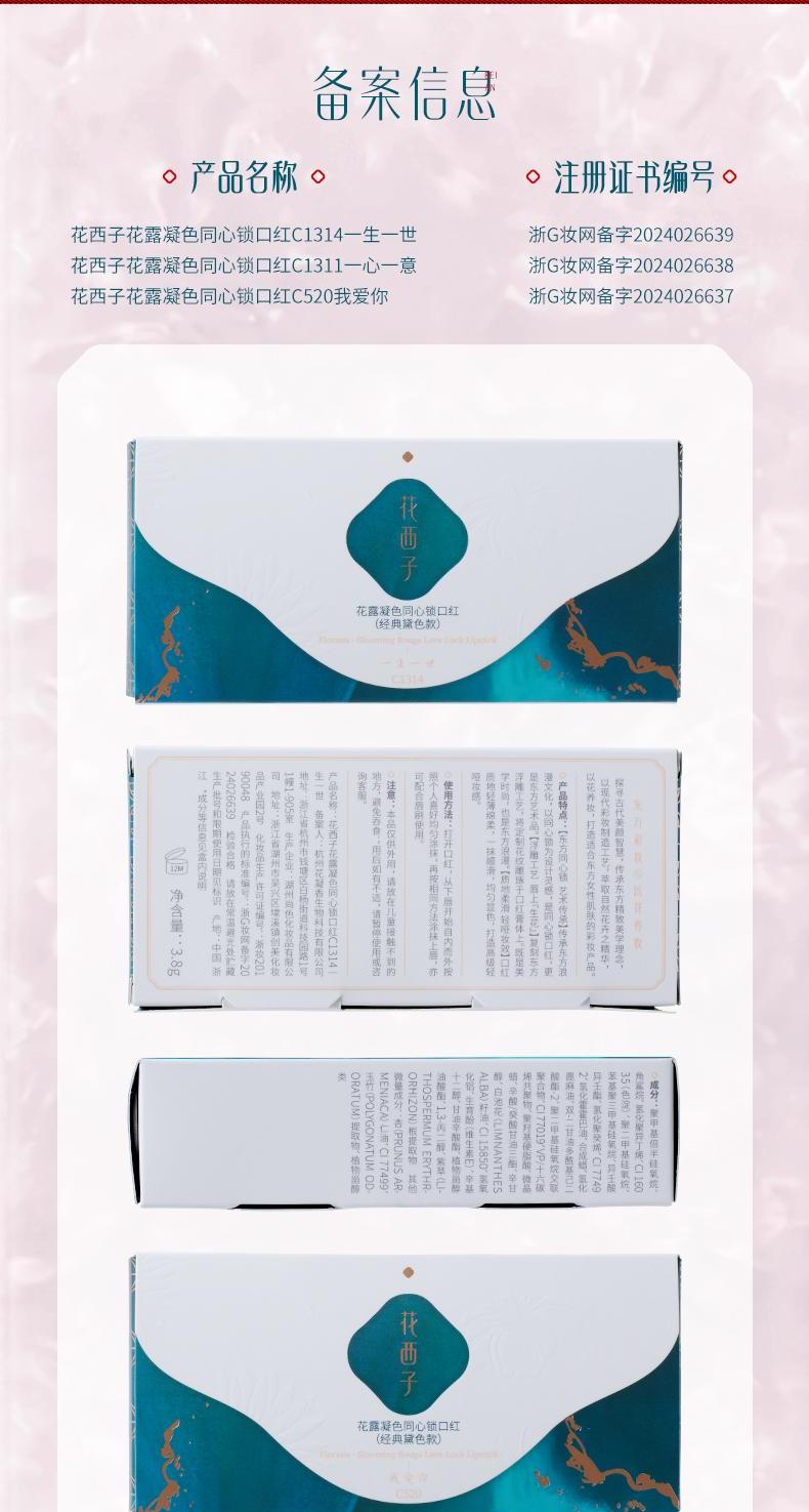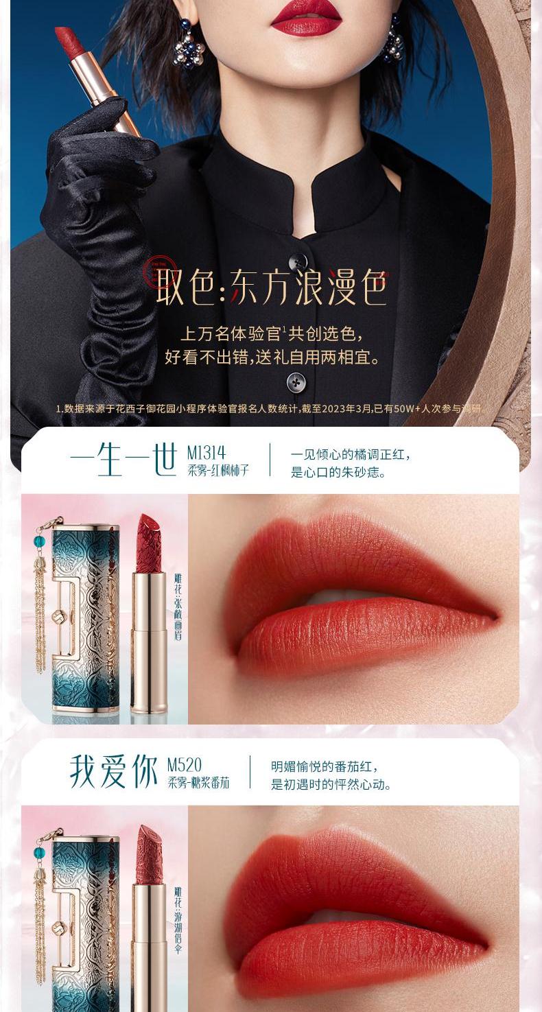 花西子 花露养唇同心锁口红-丝绒哑雾款-M1314一生一世-3.8g