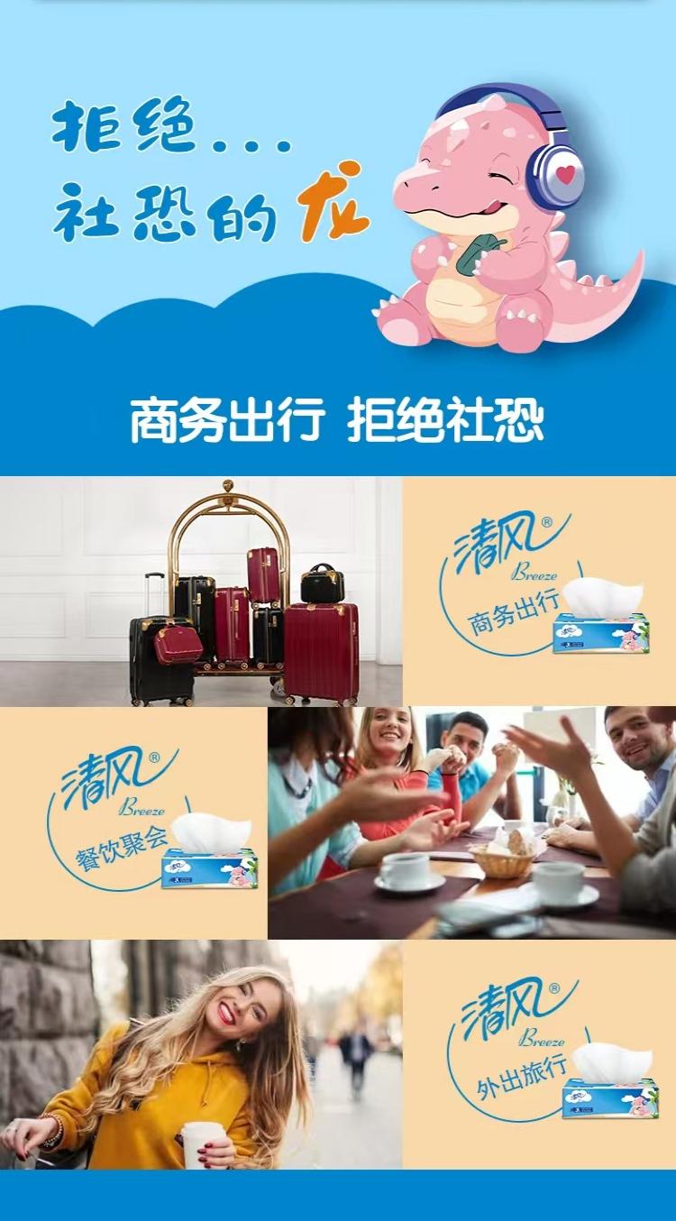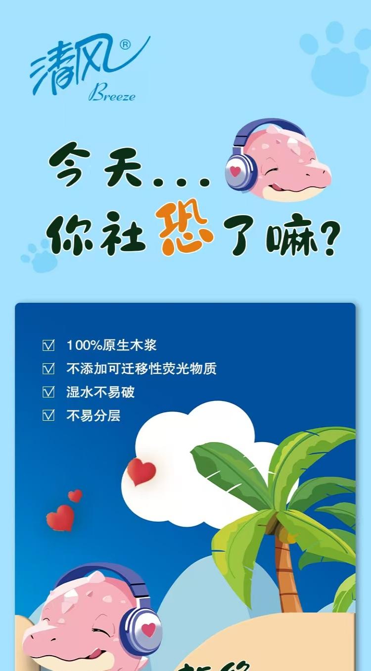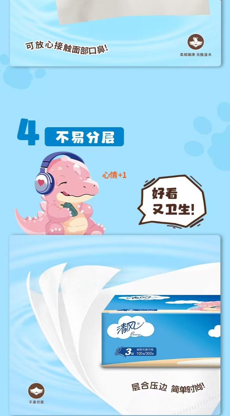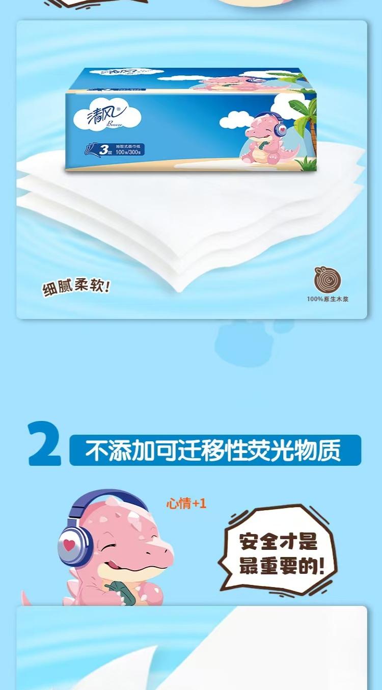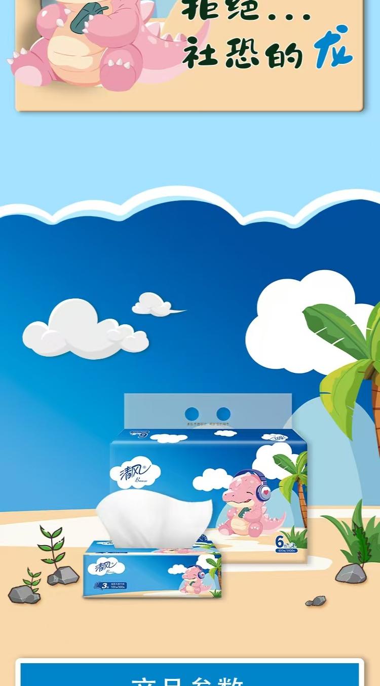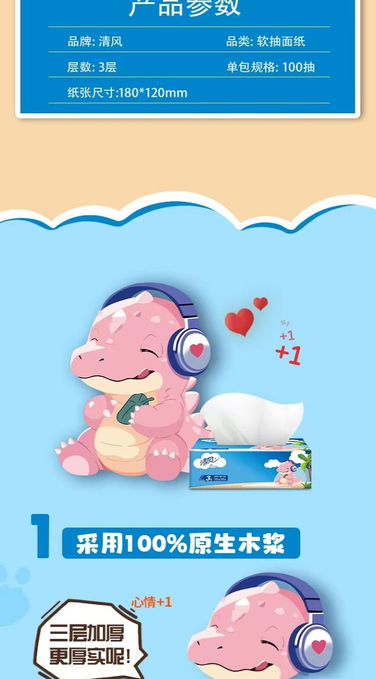 清风 小恐龙抽取式面巾纸3层100抽/包x6包/1提x4提/箱(共24包)