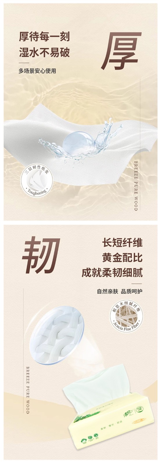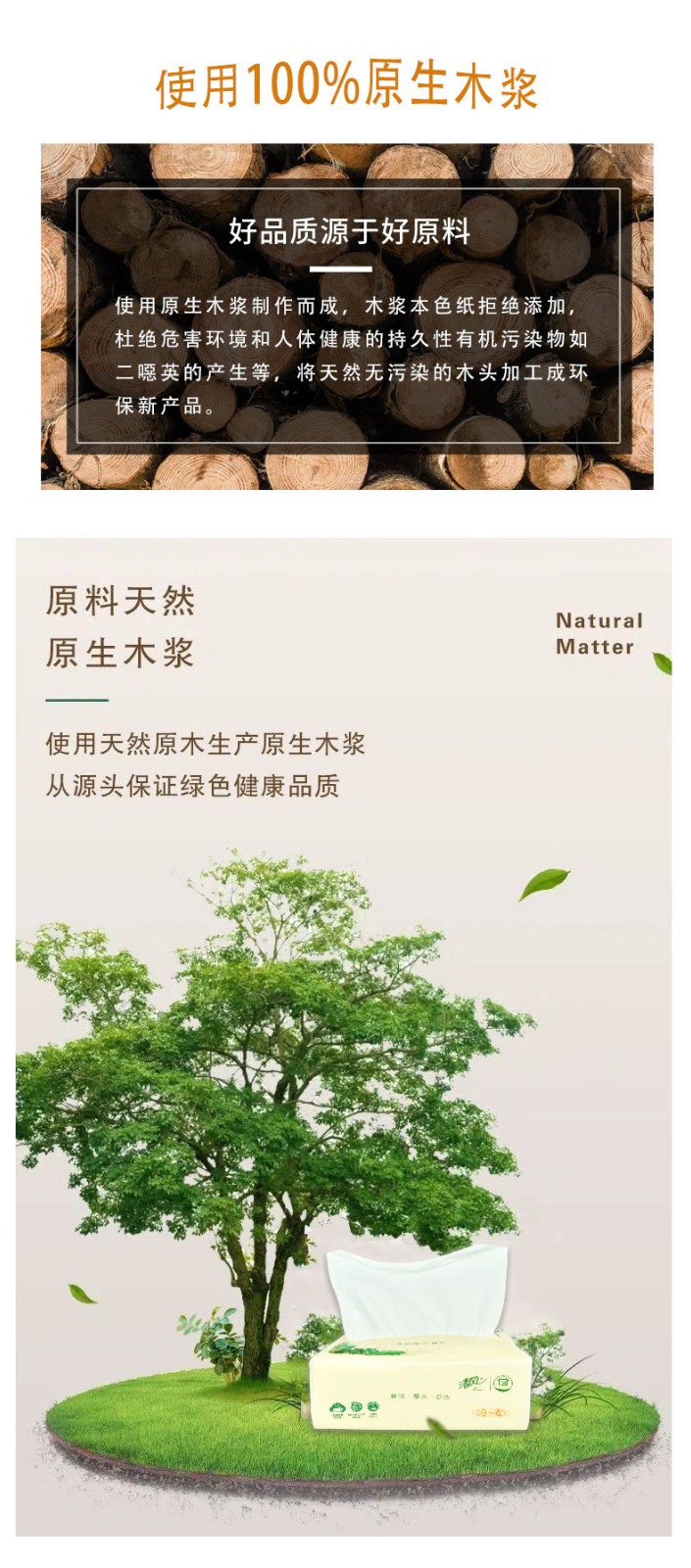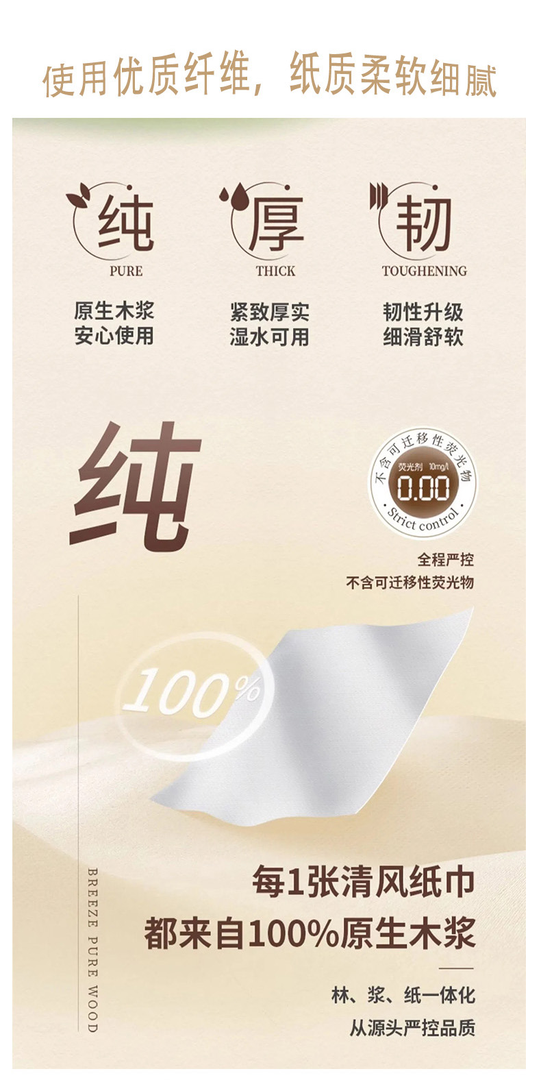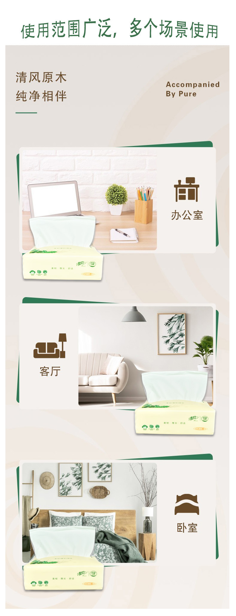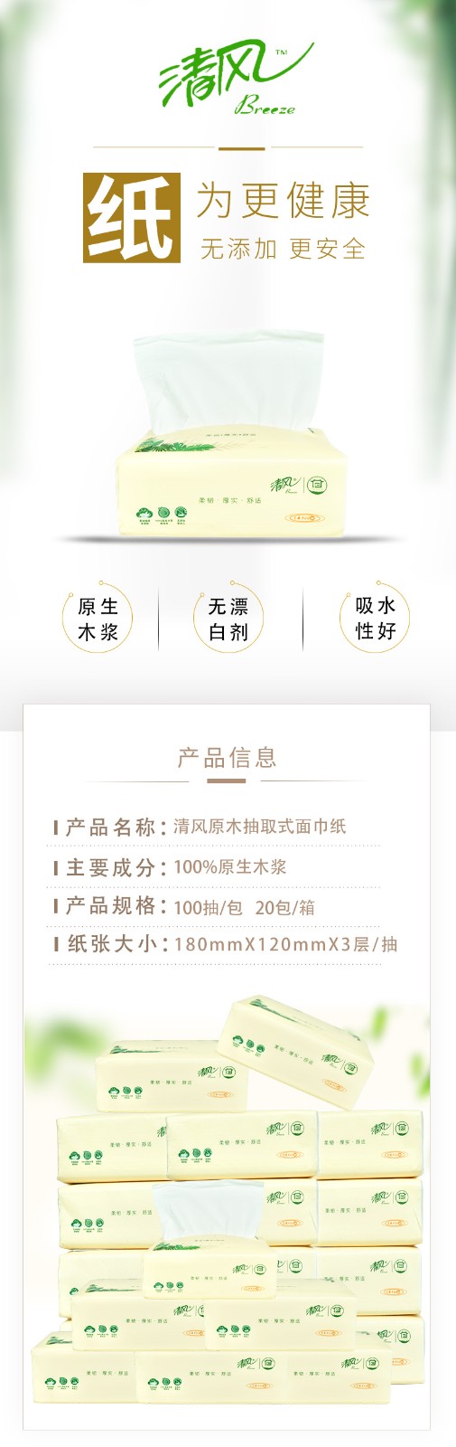 清风 原木抽取式面巾纸抽纸3层100抽1包(20包)