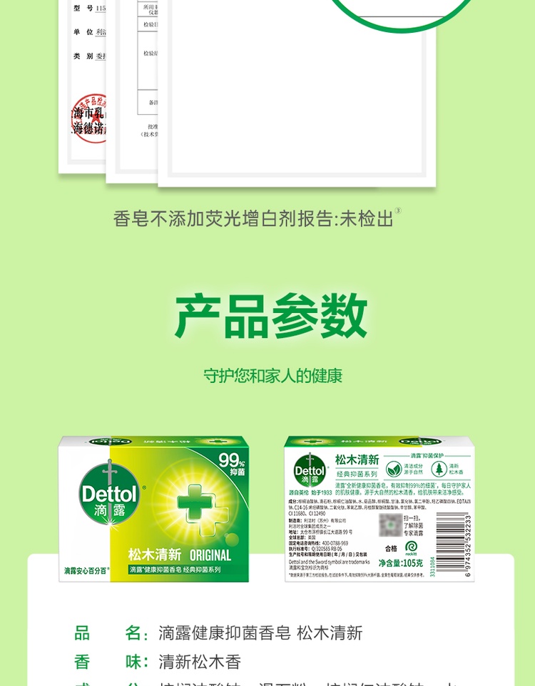 英国Dettol滴露 健康抑菌香皂松木清新105g