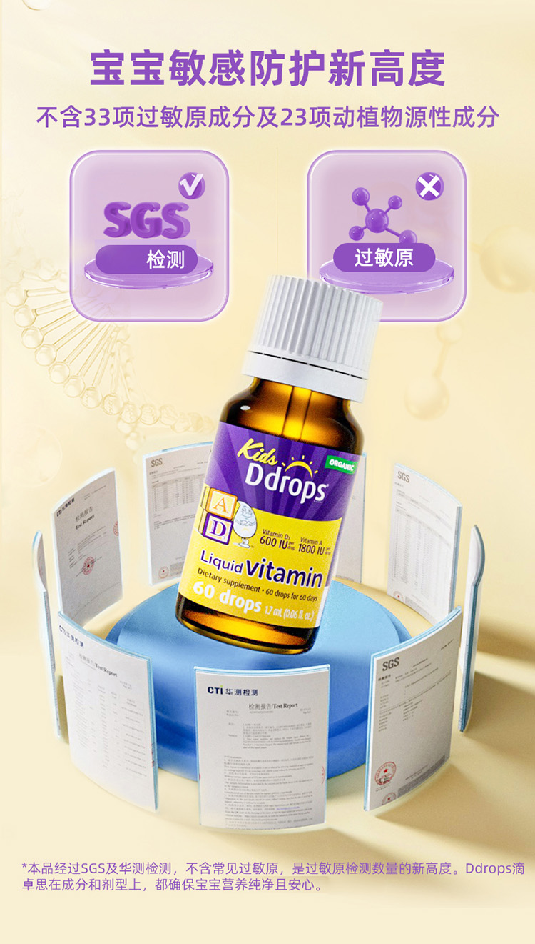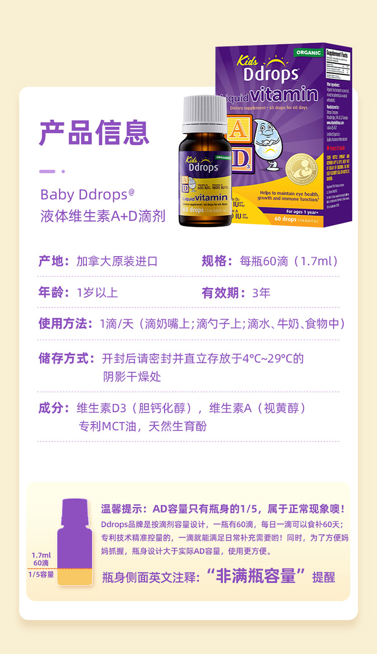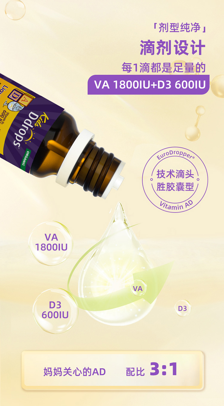 Ddrops 滴卓思儿童维生素A+D(600IU+1800IU)滴剂 60滴