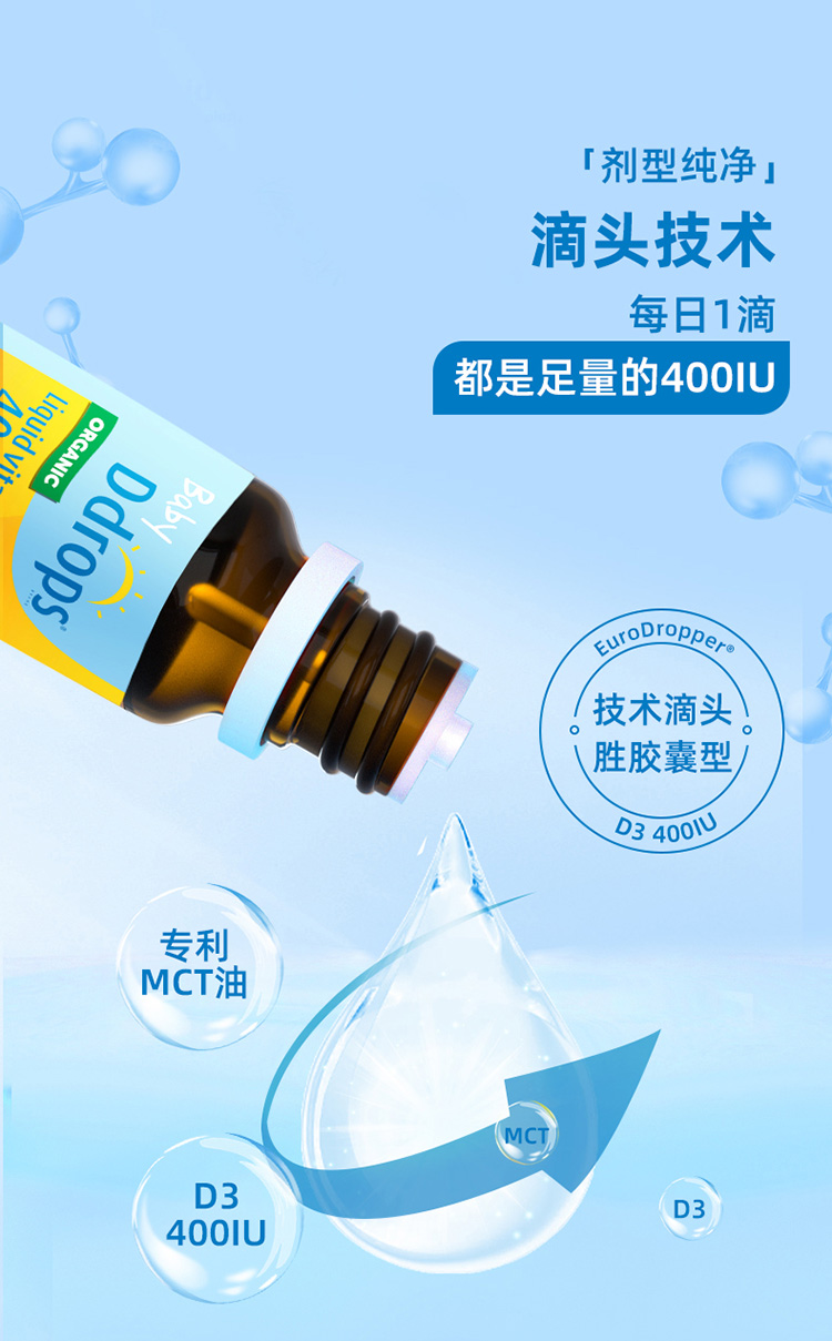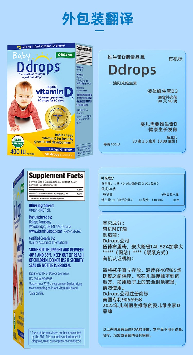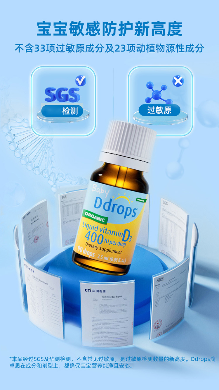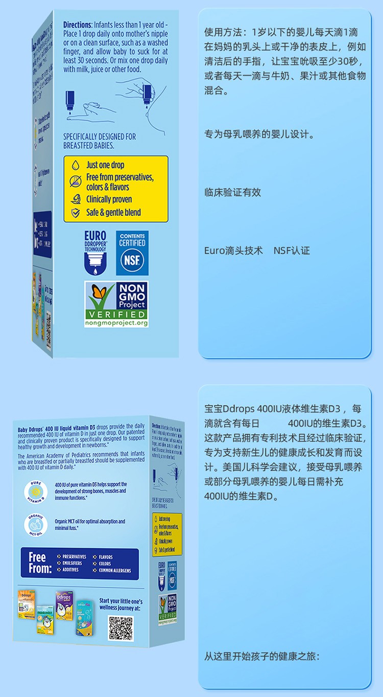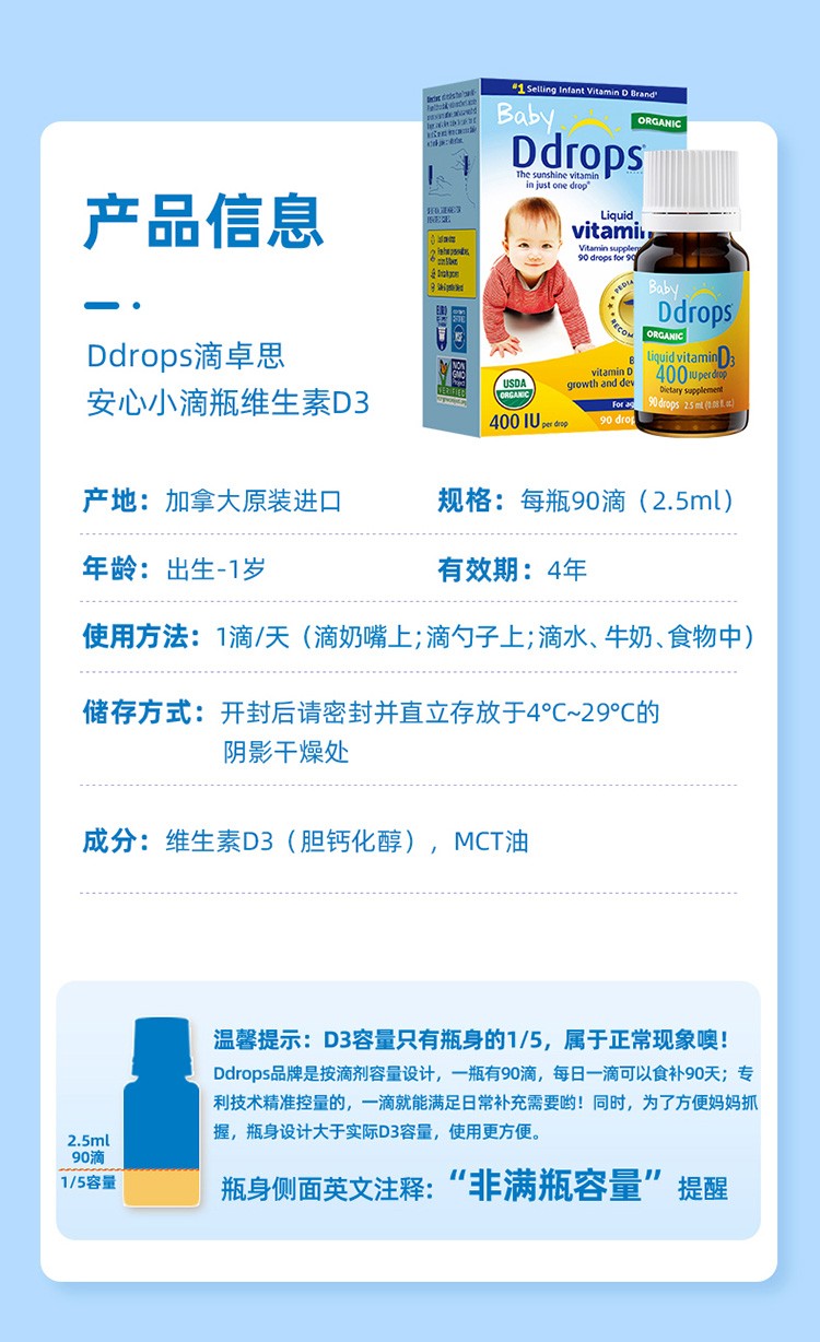 Ddrops 滴卓思婴儿补钙维生素D3滴剂400IU 2.5ml