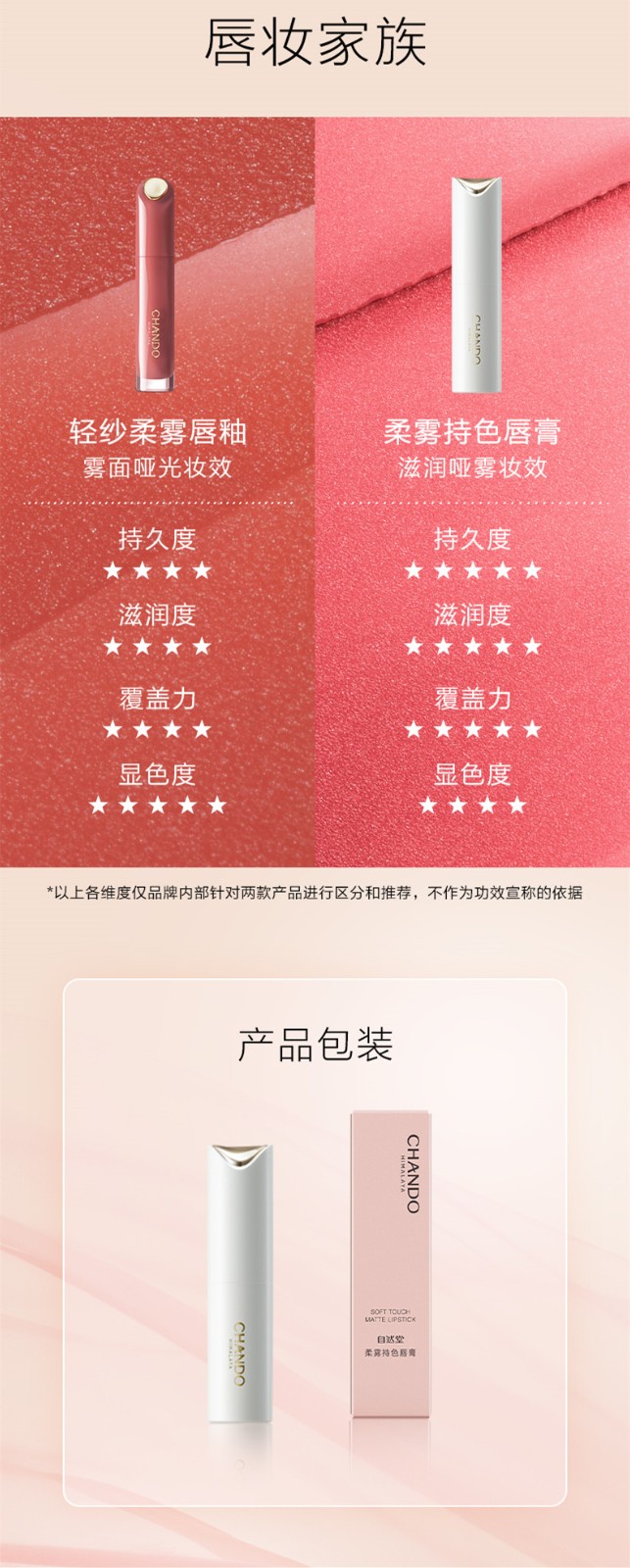 自然堂 柔雾持色唇膏#P03春樱粉(3.2g)