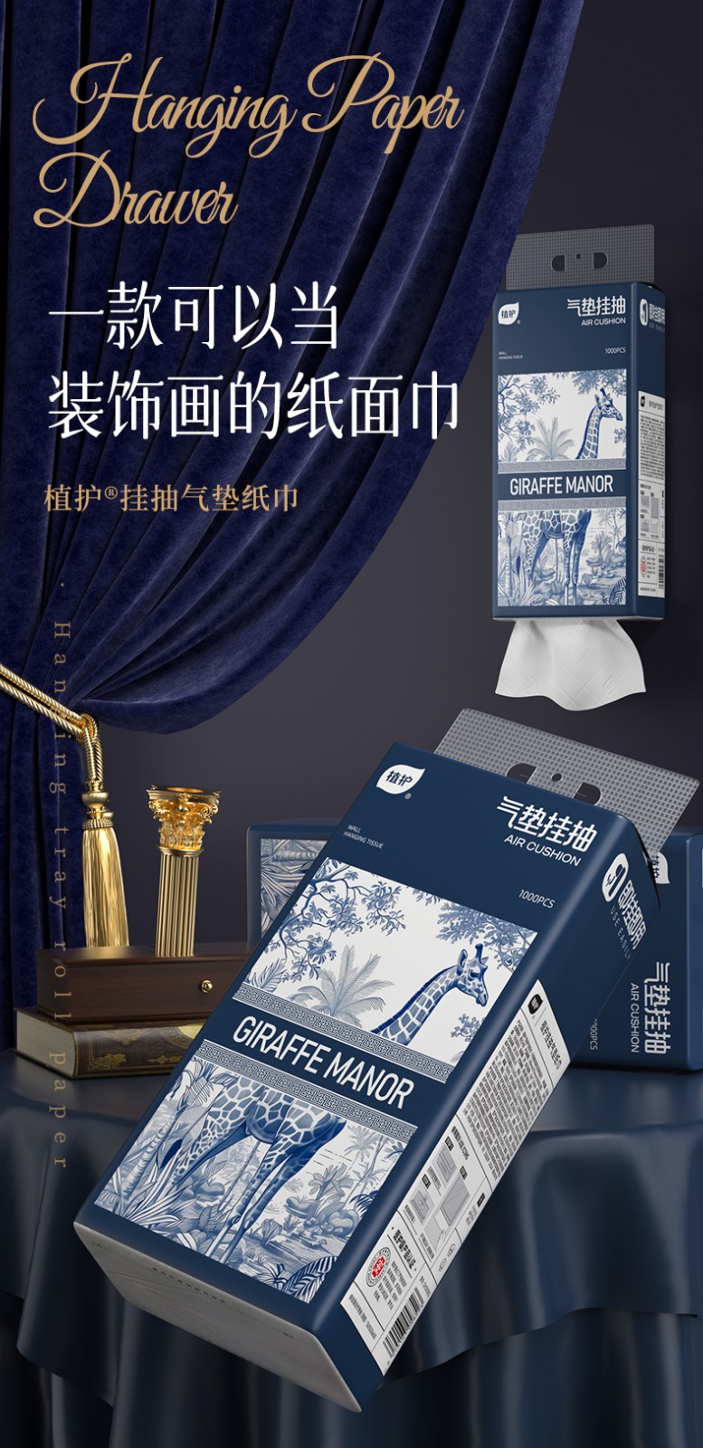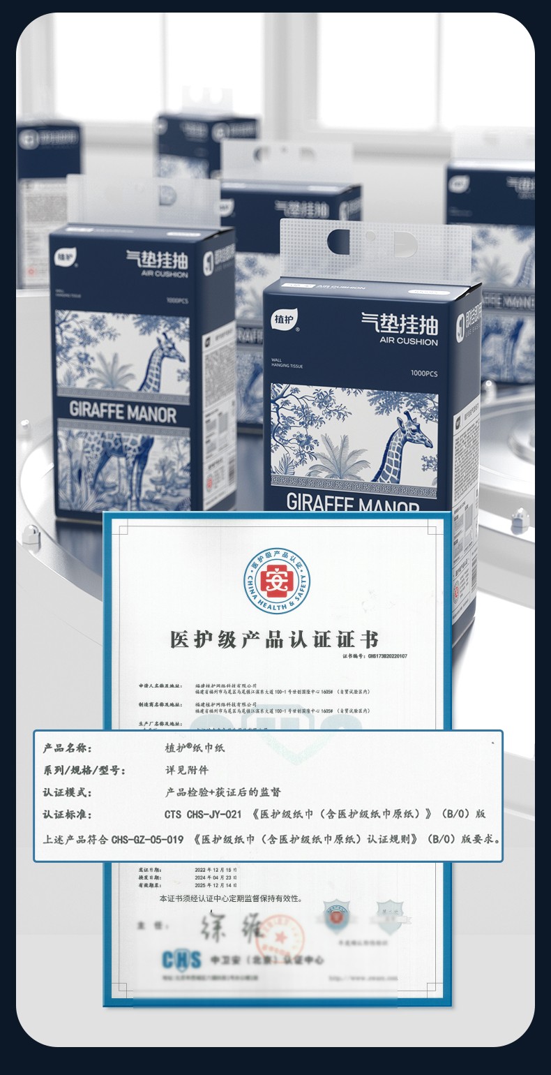 植护 气垫挂抽纸面巾·长颈鹿的庄园蓝色250抽*8提