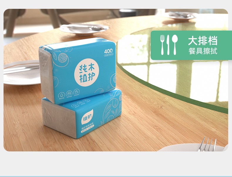 植护 蓝色大包餐巾抽纸100抽*4包