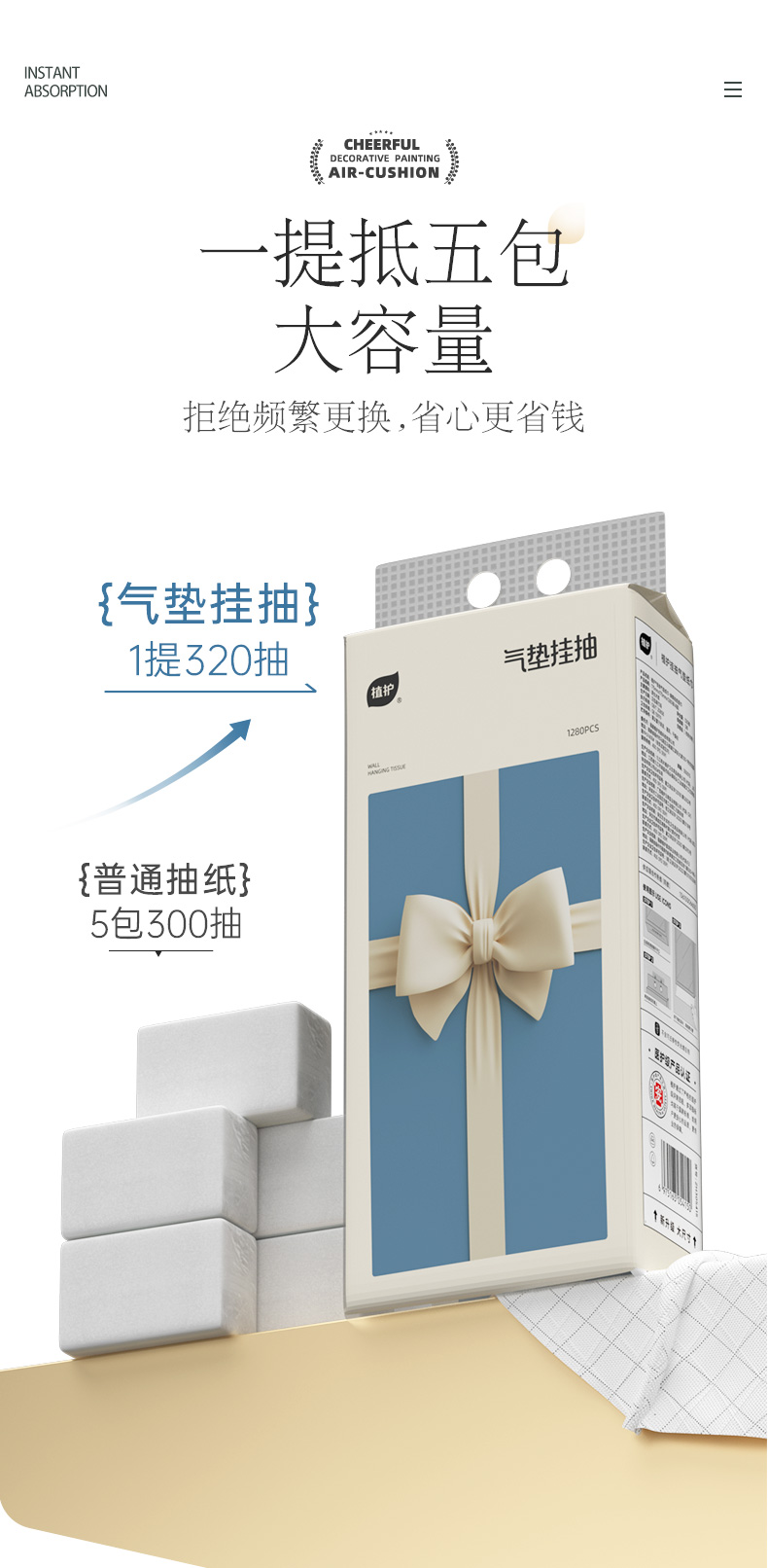 植护 气垫纸巾悬挂式家用擦手纸320抽*4提