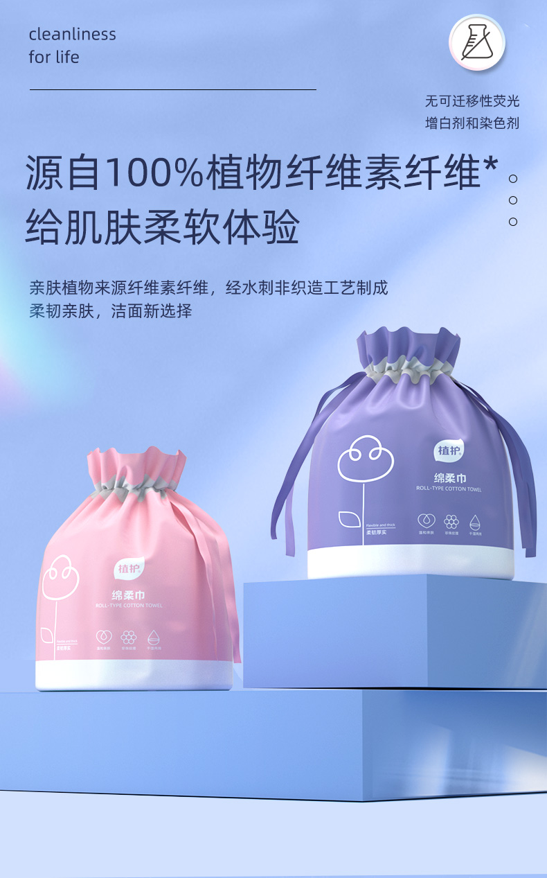植护 洗脸巾一次性擦脸巾粉色*1卷