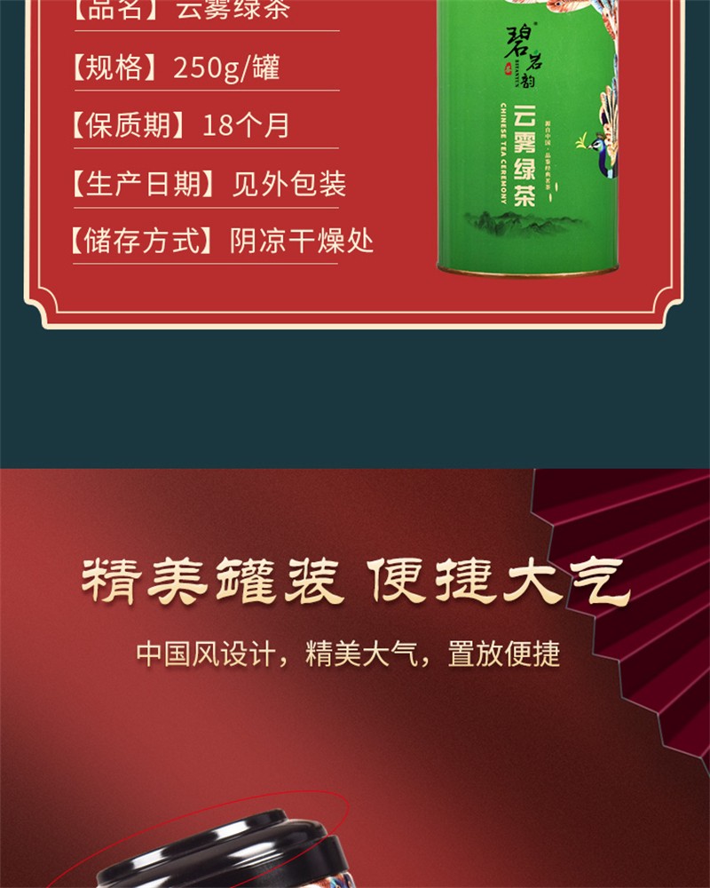 碧岩韵茶孔雀绿罐云雾绿茶250gKQLC250