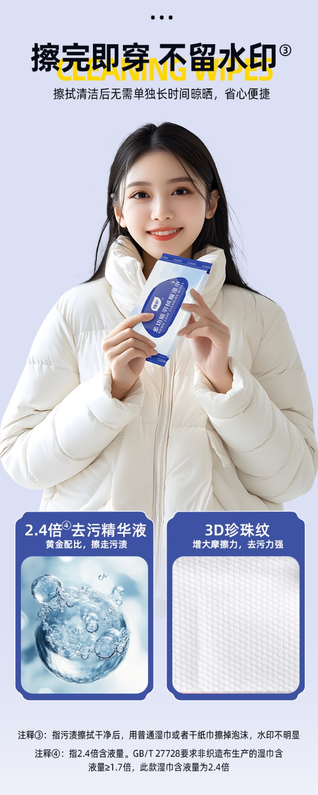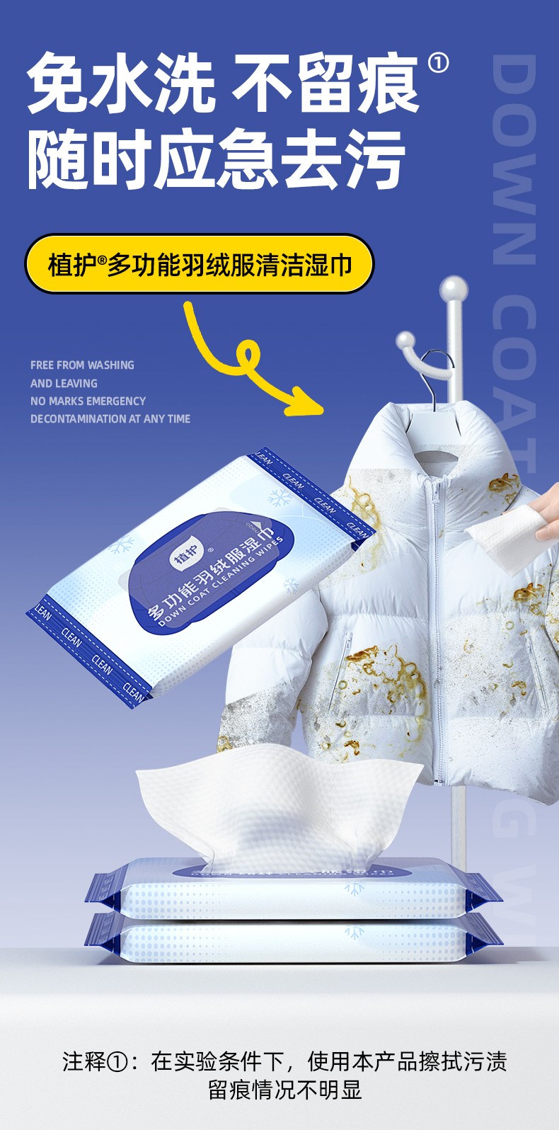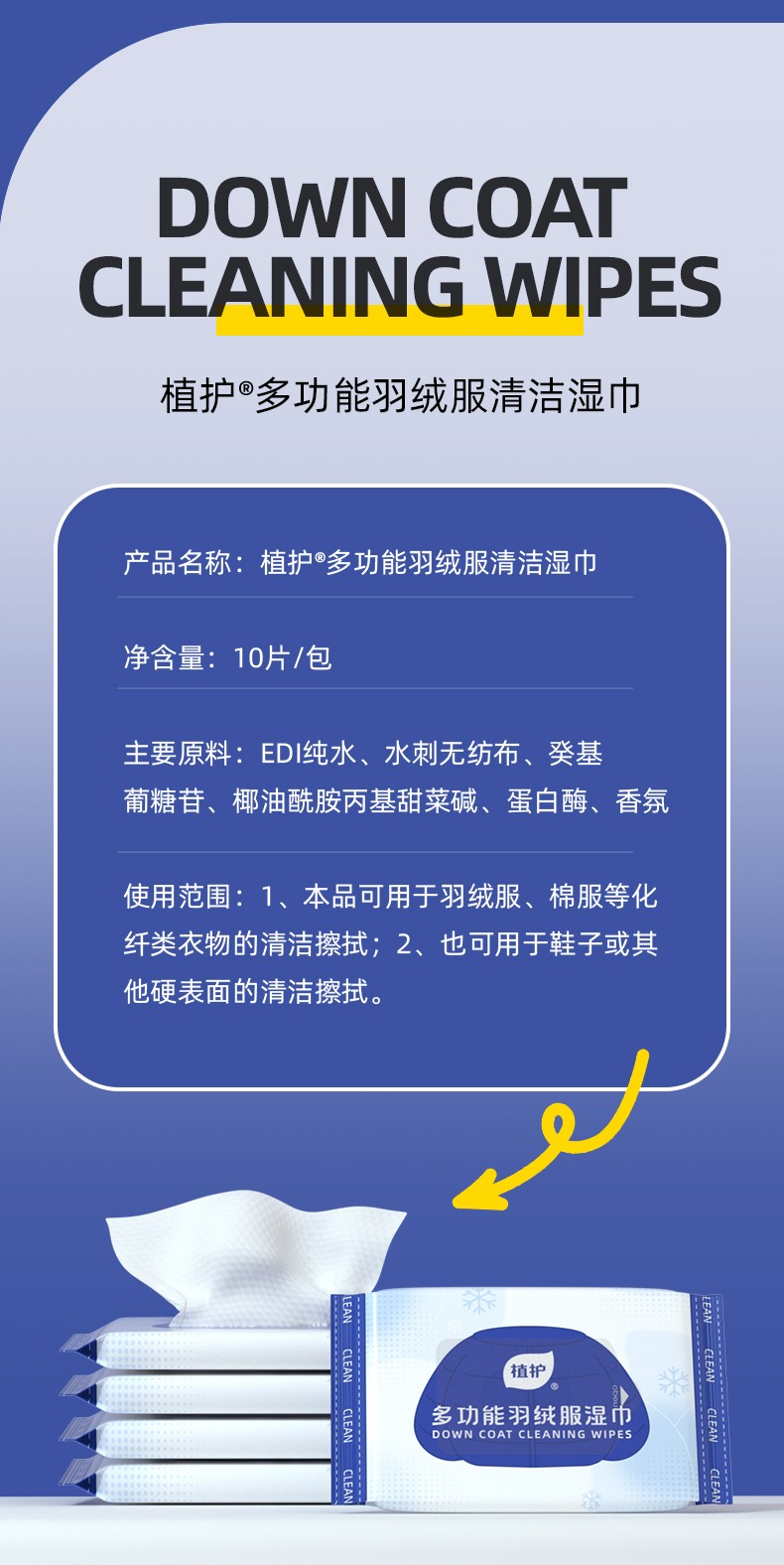 植护 宝蓝系列多功能羽绒服清洁湿巾10片/包*15包
