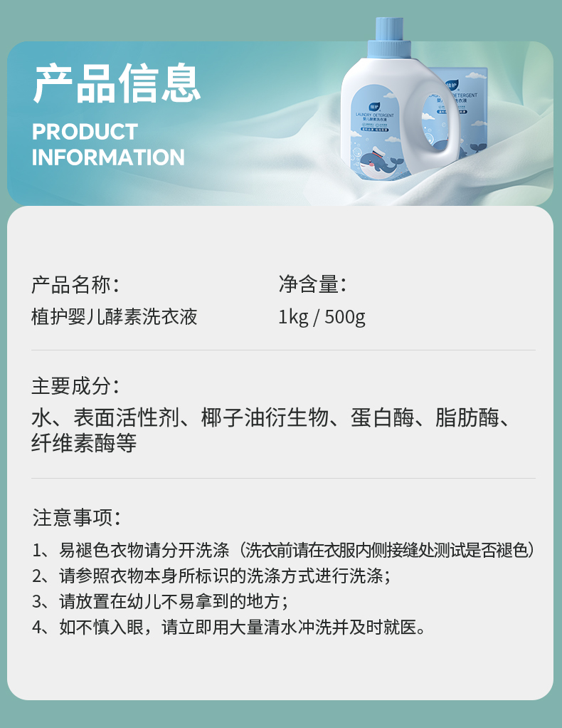 植护 婴儿酵素洗衣液1kg*2瓶