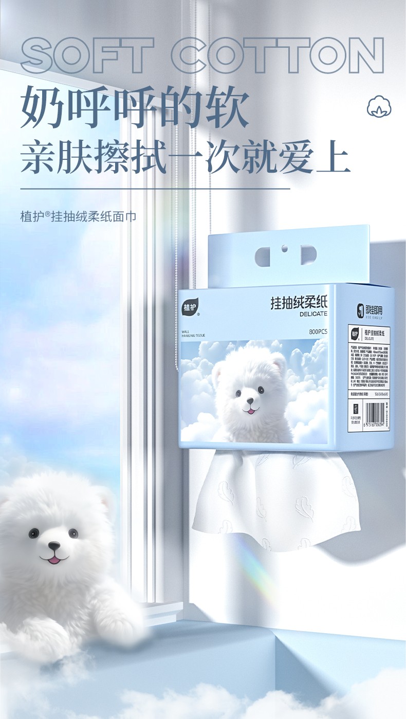 植护 挂抽绒柔纸云朵熊 200抽*6提