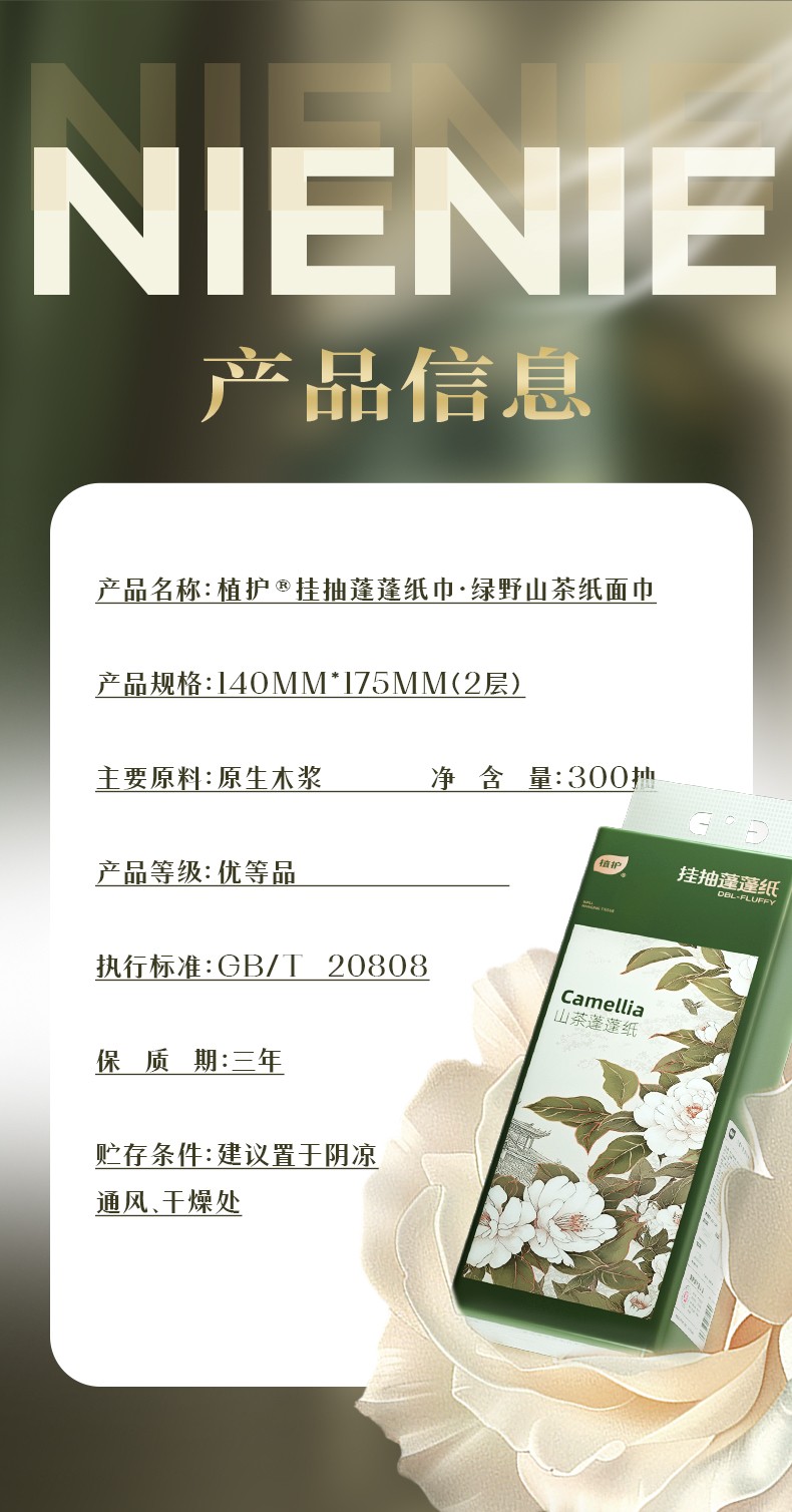 植护 绿野山茶挂抽蓬蓬纸巾300抽*6提