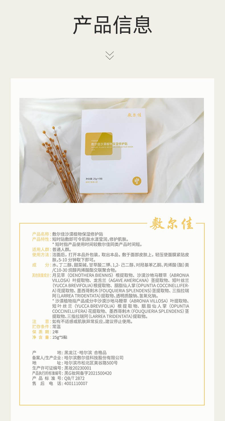 敷尔佳 沙漠植物保湿修护贴沙漠植物(5贴/盒)
