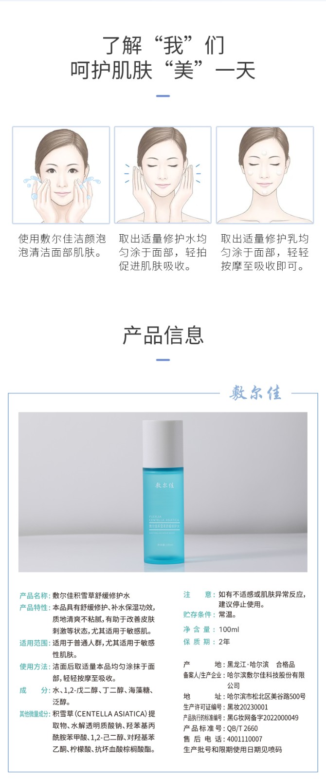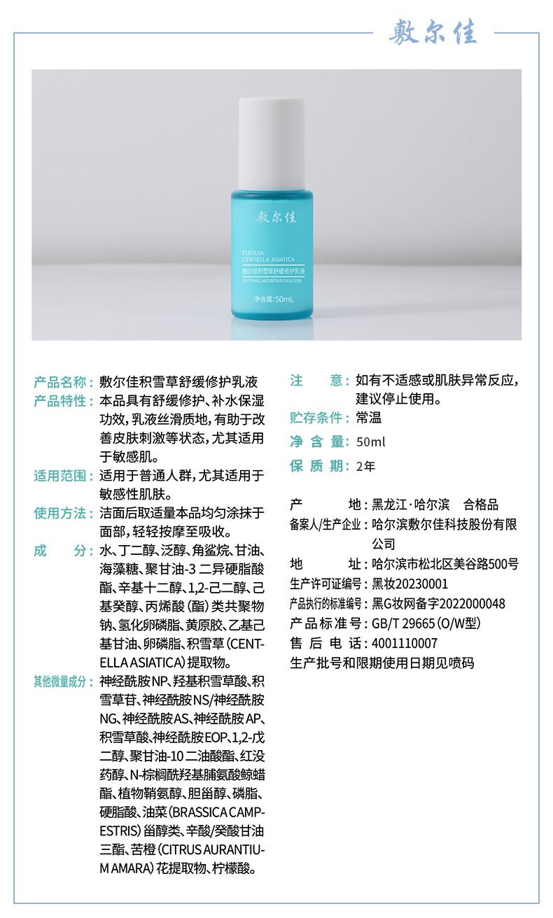 敷尔佳 积雪草舒缓修护水100ml+乳液50ml套装