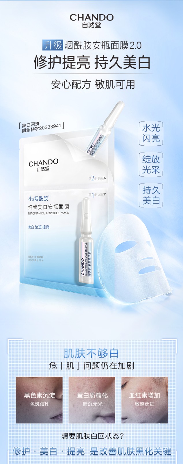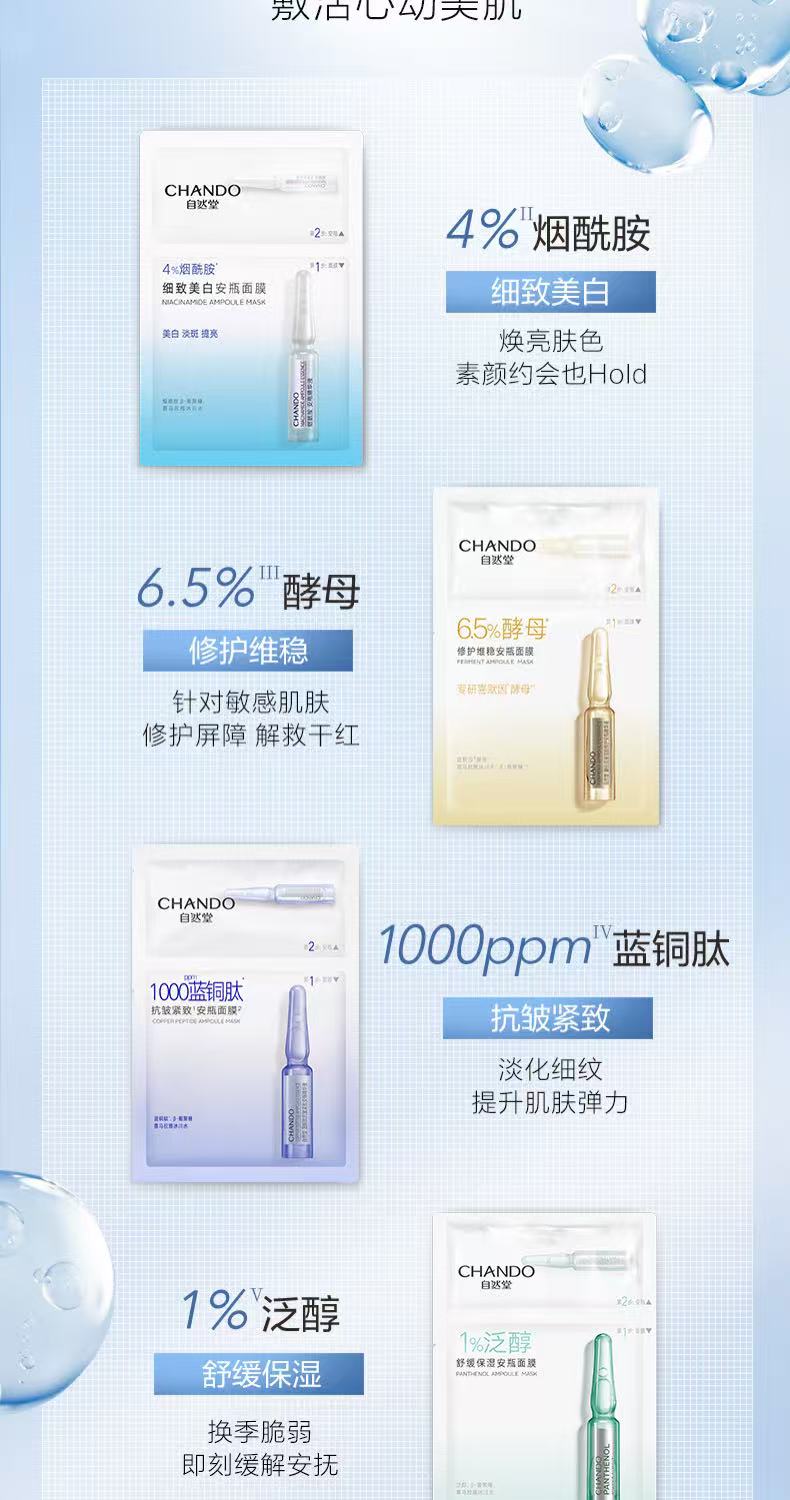 自然堂 酵母肌底修护维稳安瓶面膜(喜默因)(1.5ml+33ml 5片装)